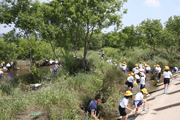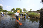 ●7月15日、木曽川で犬山西小学校の3年生約100名が自然観察会を行ないました。メダカ、シマドジョウ、オイカワ、カワムツ、アユ、ザリガニ、ブルーギル他を捕獲、観察しました。 |